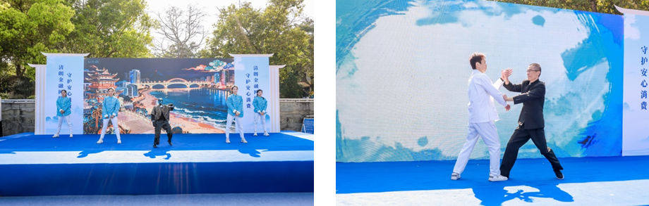 随后,咏春拳传人登台表演量身创编的“消保功夫操”,摊手揭骗局、膀手筑防线、耕手除乱象,刚劲有力的拳法搭配朗朗上口的防骗口诀,让观众看得津津有味。“这样的活动有意思,学上几招,还能记牢防骗技巧,一举两得!”现场年轻观众忍不住跟着比划起来。