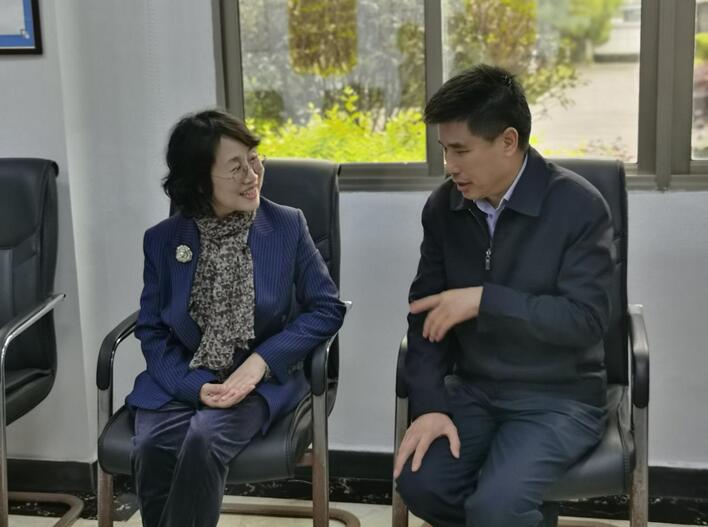 高鹰群一行首先来到八六三公司设立的“红领工作室”观看公司宣传片,从宣传片中对八六三公司的发展史、公司愿景、价值观有了一定了解后,望着荣誉墙上挂着的琳琅满目的奖牌,高鹰群发出“这些奖牌含金量真高!”的感叹。她聚精会神倾听完八六三公司董事长陈远兴对公司现在及未来的发展规划、战略布局、人才队伍建设的汇报后,高度赞赏八六三公司在人才队伍建设中独具特色的党建+“红领带白领,白领带蓝领”工作法,以及在生产经营中紧紧把握市场需求,持之以恒走与国内著名研究院强强联合,建立紧密的合作关系,将其研发出的科技成果放大生产并投入市场的经营发展之道。