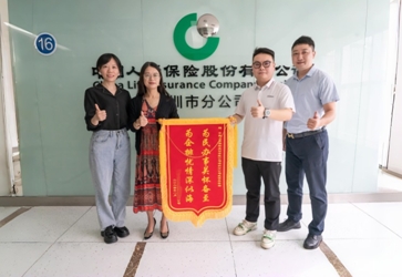 王刚(化名)将锦旗送到中国人寿寿险深圳市分公司