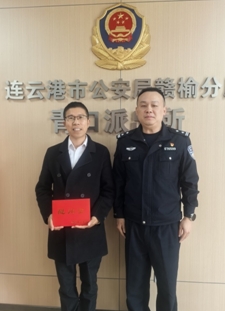11月12日,赣榆区公安局嘉奖了李亮的见义勇为。