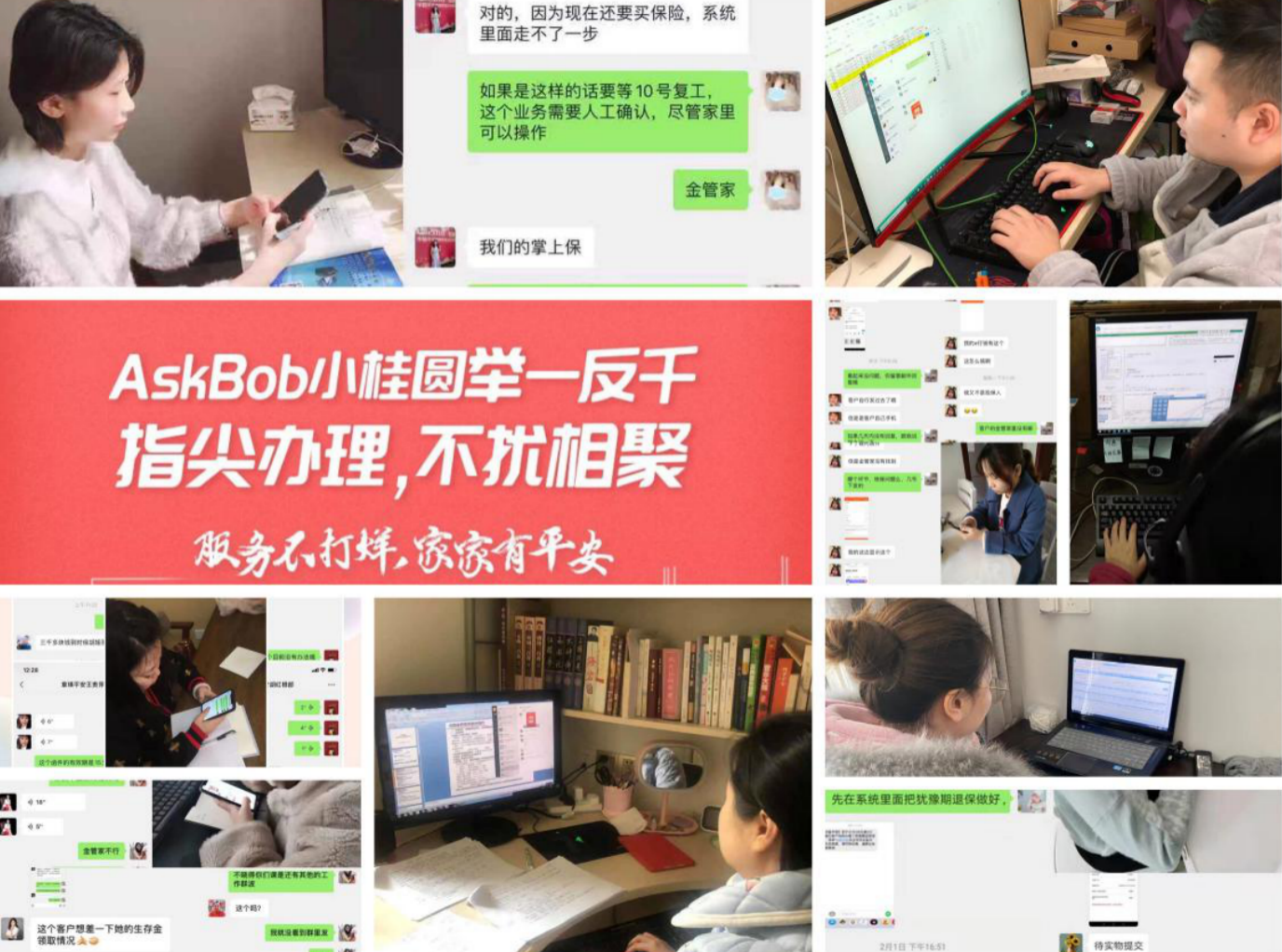 非常时期,平安人寿江西分公司依托智慧客服,通过金管家APP为客户提供“不跑腿”指尖业务办理,通过“AskBob小桂圆”客服机器人,线上为客户提供业务办理、服务咨询等服务。