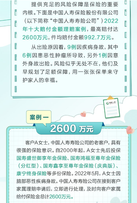 中国人寿2022年十大理赔案例 最高赔付达2600万元